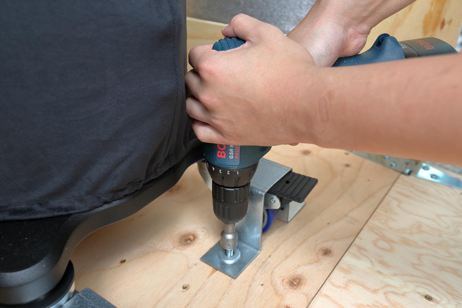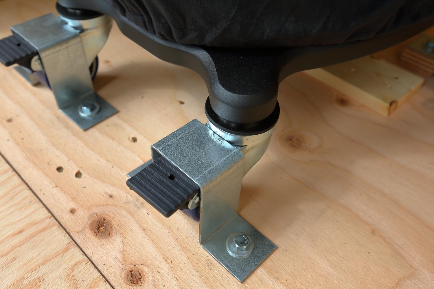 鋁合金底板及延伸出來的腳座,下面已經放置好墊材