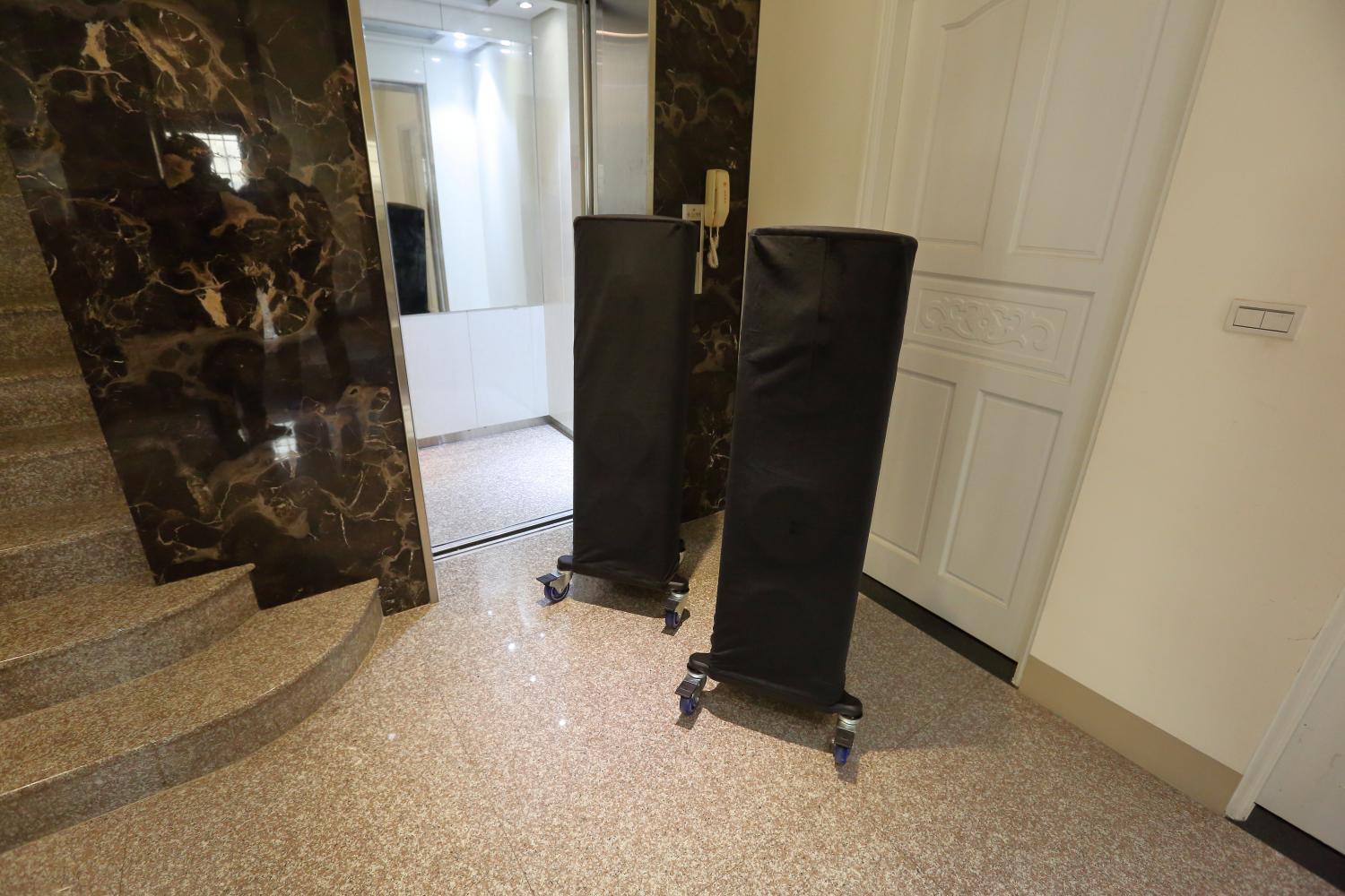 我準備了更大的黑金石板墊喇叭,以及加強房間右側的硬質牆壁處理,
