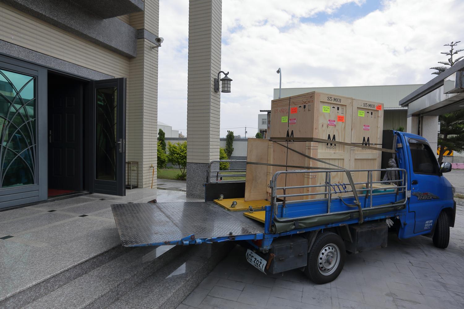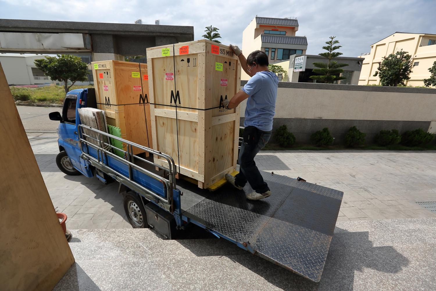 一早貨運司機就把喇叭載來了