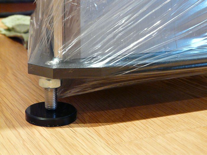 音箱材值是用鋁 經由BNC加工製程的,還差旗艦的航太合金一點,但重量也不小,放至定位花了不少力氣
