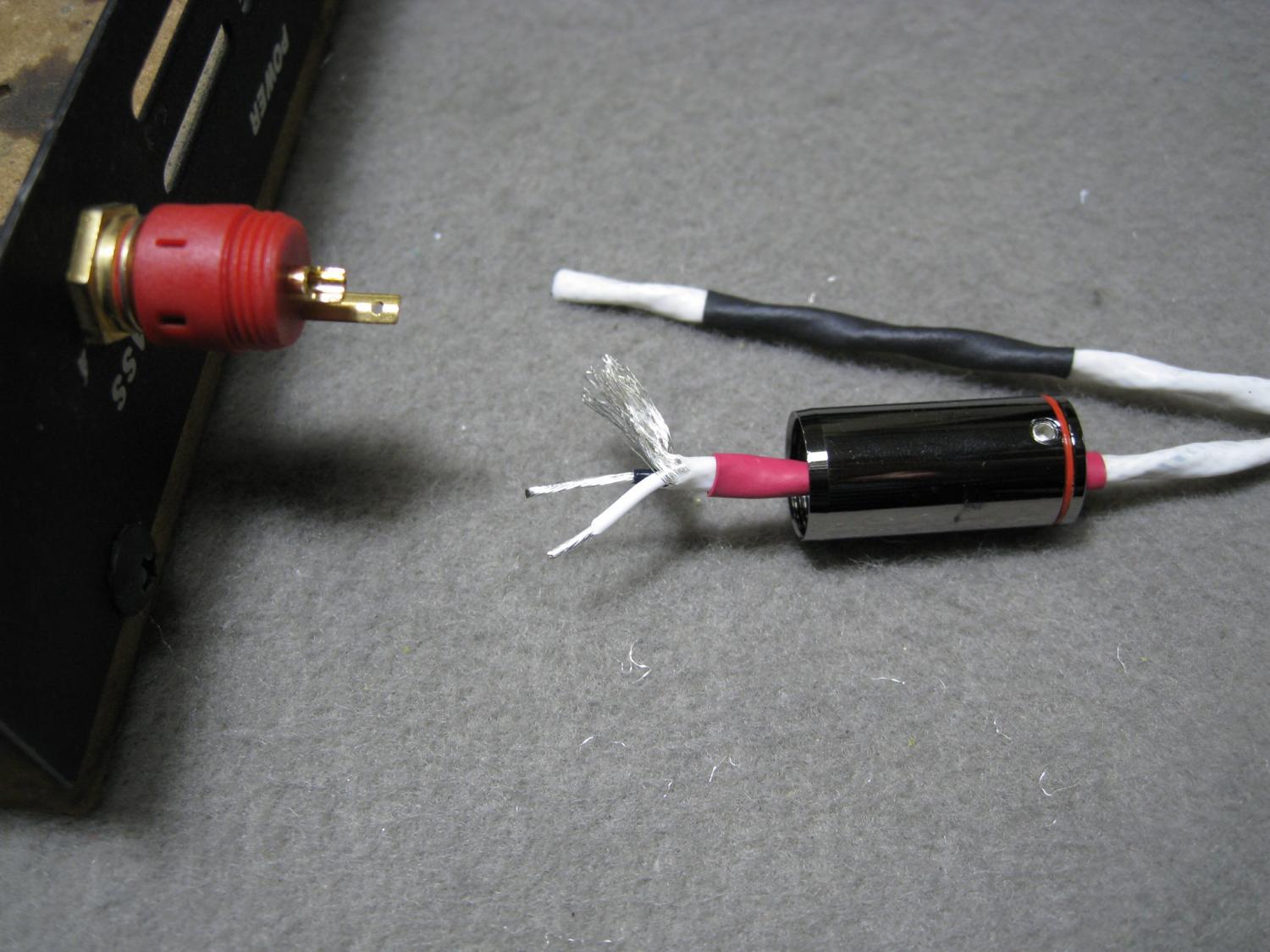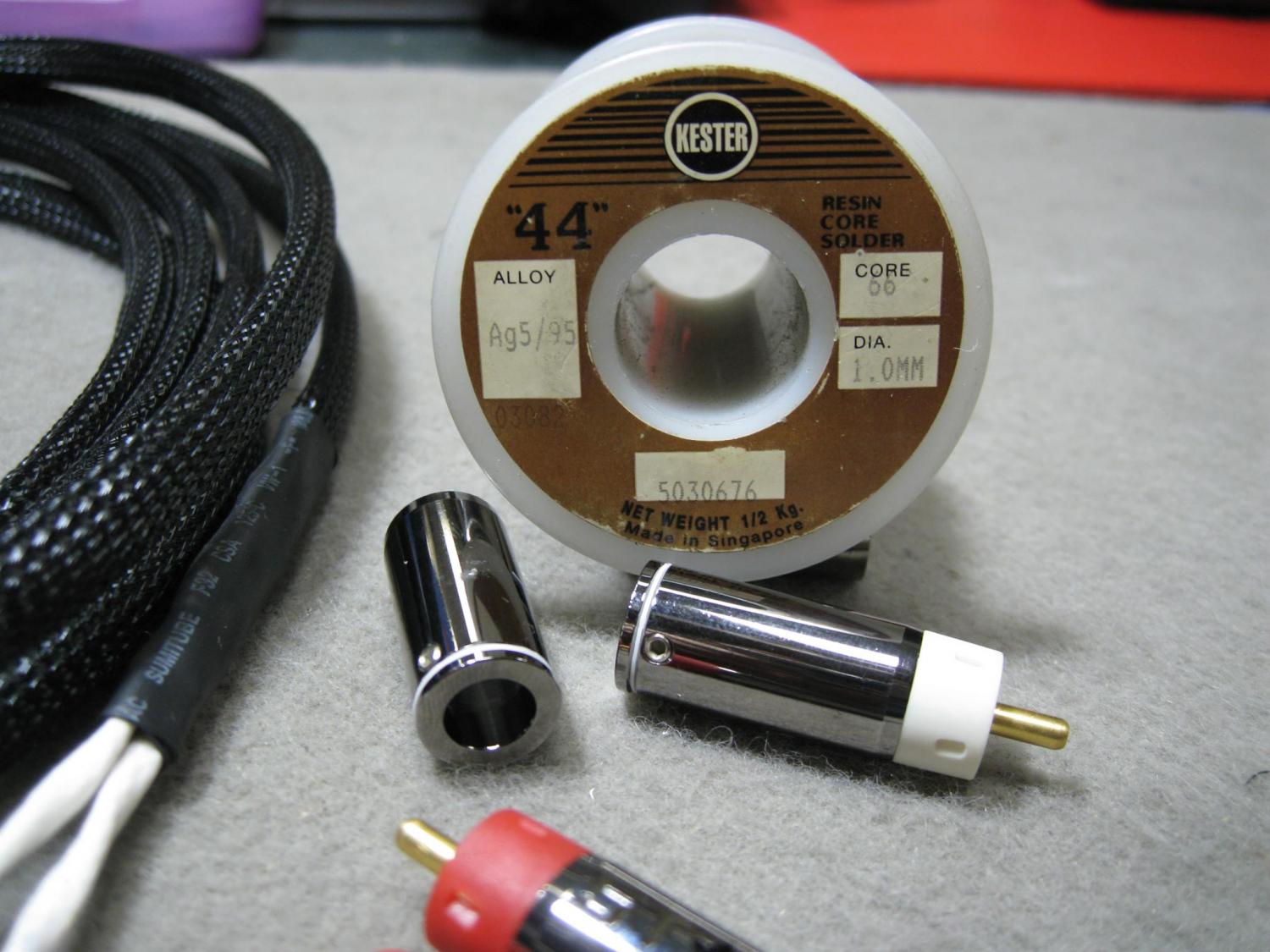 線材完成,RCA接頭末端再以熱縮套管與線材固定,並貼上訊號方向貼紙