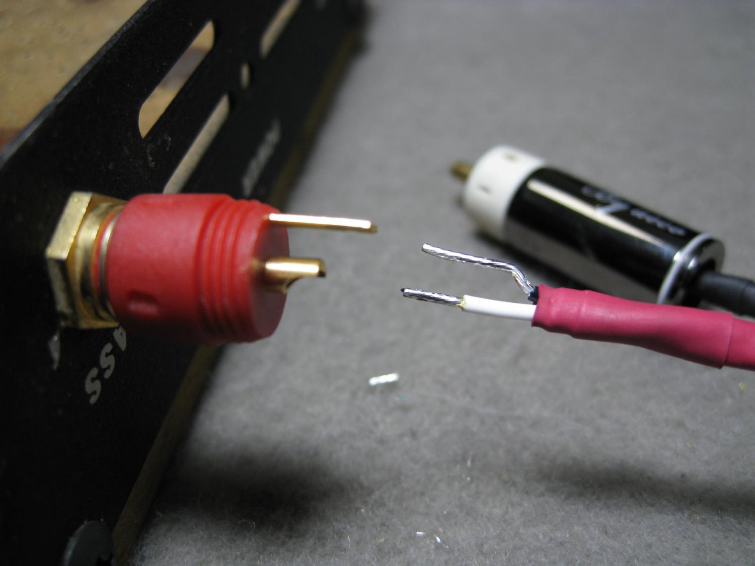以既有rca母座夾持固定,線材先撥線整理,分線處以熱縮套管固定