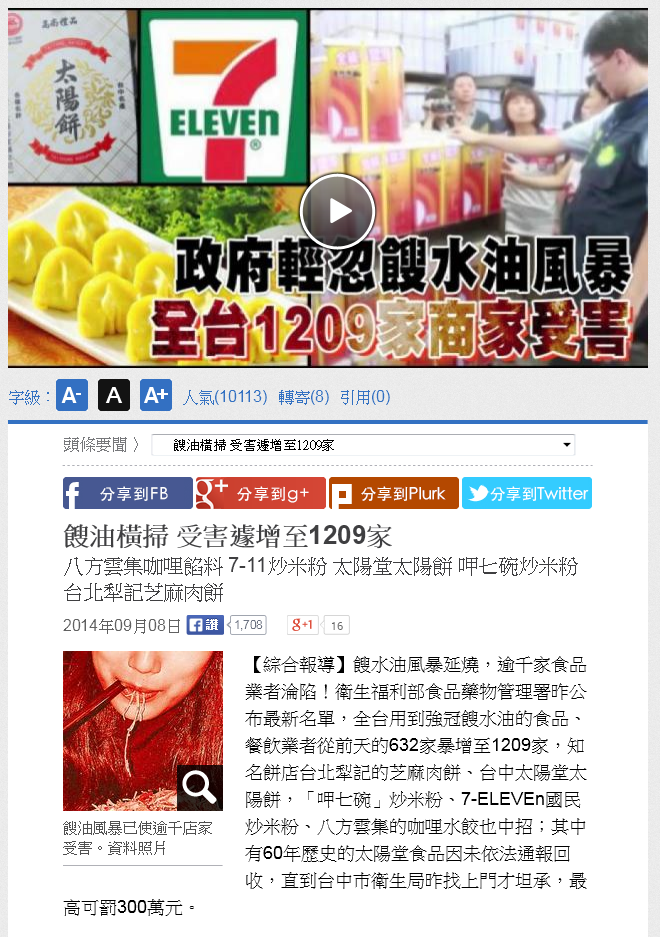 餿油橫掃 受害遽增至1209家