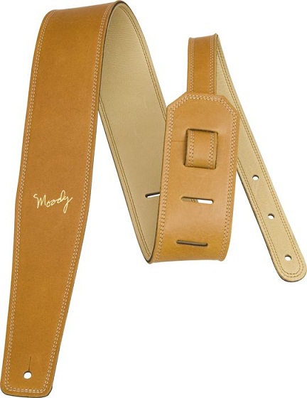 Moody 2.5" Luxury Camel Leather Guitar Strap with Cream Leather Back
