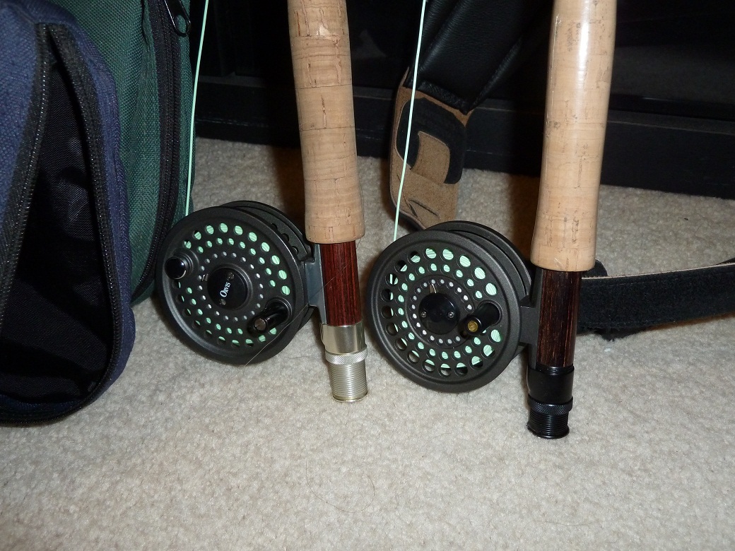 於是買了兩根竽子,二手全新的(9尺及8尺半長的)及捲線盤,還有自製餌(飛蟲)的配件及工具全套。這种竿新的很貴[好品質品牌的]