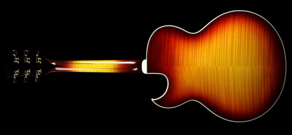 複合木琴頸[夾層複合不同木紋]音質中性[融合]音頻響較穩定,但也失去了單一原木特有的音色[共震鳴響],Gibson空心琴身爵士系列用的較多