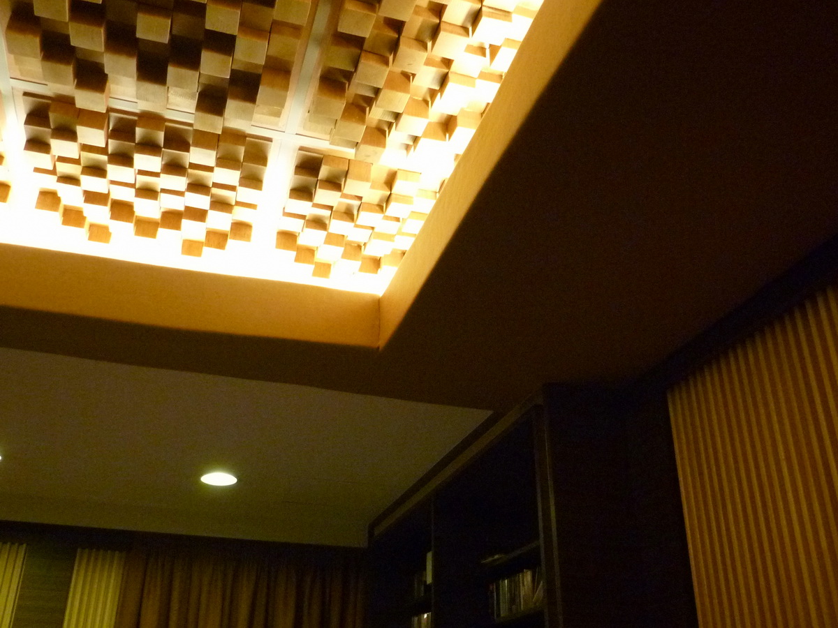 天花板處理.實木擴散板.外圍框包毛毯是後來加強.