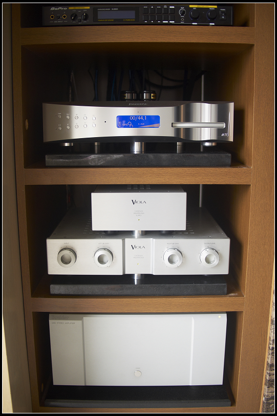 Puccini 上面用4顆Harmonix壓著,Puccini + Cadenza都墊Acapella金屬腳錐在The Absorber之間