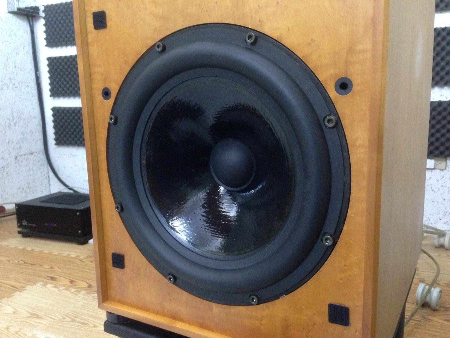 廢話不多說。不是很清楚換了哪些零件,回頭再問問張老師,就外觀來看,除了螺絲外,二支喇叭的低音橡膠懸邊、中音橡膠懸邊、振膜及中間的圓錐換新過,二支高音單體也像是新的。