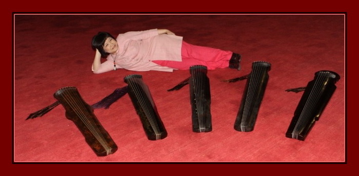這次數錄音所用的的價值連城五代古琴,從左至右依次為唐琴“太古遺音”、宋琴“高山流水”、元琴“寄意”、明琴“雲和”、清琴“養和”