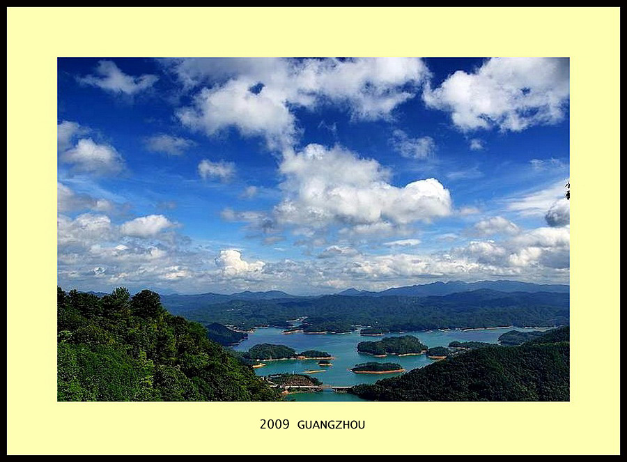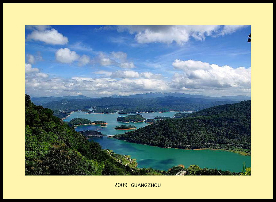 位於廣州北部從化市郊的流溪河國家森林公園是經林業部批准建立的首批國家十大森林公園之一,總面積8831公頃,其中流溪湖於一九五八年建成,面積1466公頃,蓄水量3.6億立方米,水深約70米,在碧波萬傾的湖面上,分佈著大小二十二個島嶼,如白玉翡翠。在公園的東南部,聳立著五指山、牛角山、雞枕山等海拔千米以上的山峰六座。其中雞枕山海拔1146.7米,是公園內第一高峰。登高望遠,一派“遠山時明滅”、高峽出平湖“的壯觀景象奔來眼底,使人頓覺置身仙幻奇景之中。