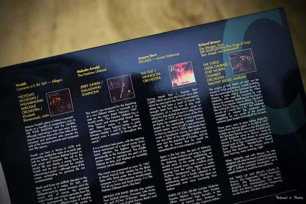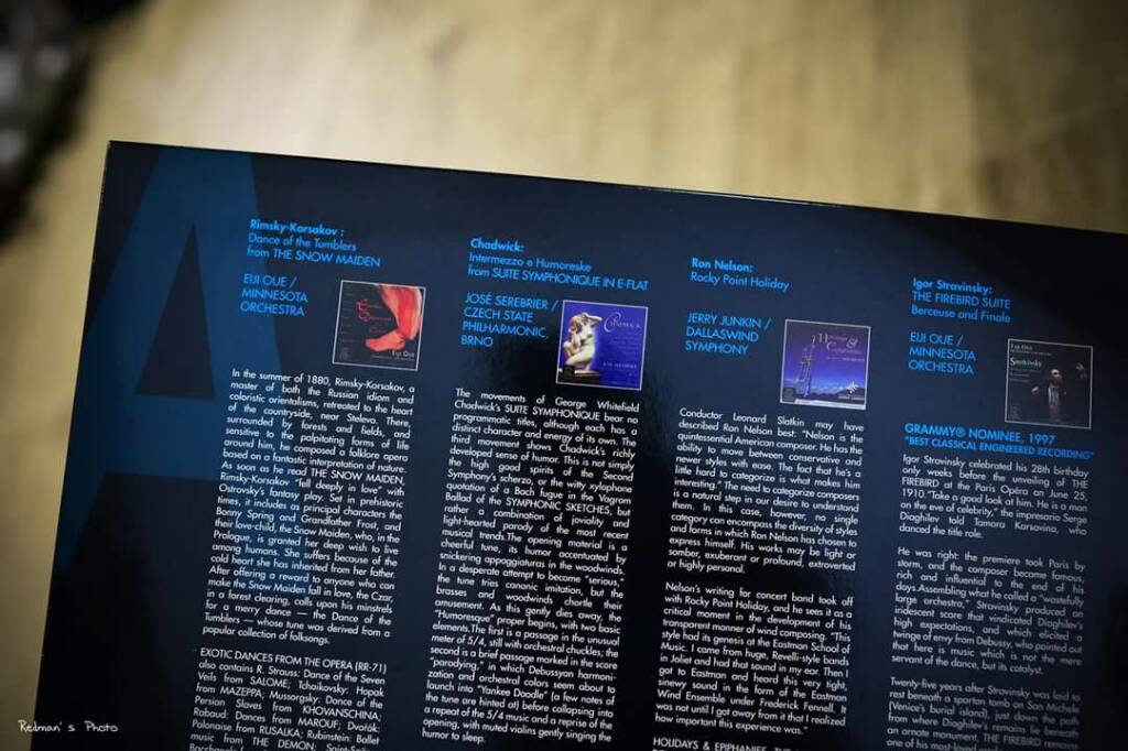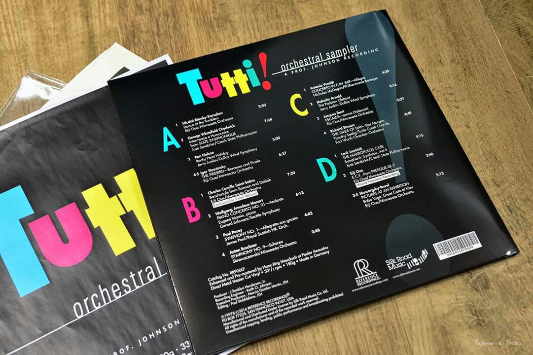 這張Tutti! Orchestral Sampler 黑膠版本相當特別,因為是Reference Recordings首次和德國最負盛名最富經驗的母盤製造中心,Stockfisch老虎魚音樂製作公司合作而炮製出來,質素有保證。第二個特別的地方是Tutti!雙黑膠版本比CD版本多了一首由國際知名的日本指揮家大植英次(Eiji Oue)帶領“明尼蘇塔管弦樂團(Minnesota Orchestra)”所演繹的”聖桑:參孫與達莉拉—酒神之舞(Saint-Saens:Bacchanale from Samson and Delilah)”,使這專輯更完整及更具可聽性。這套黑膠,樂迷和發燒友萬勿錯過!!!