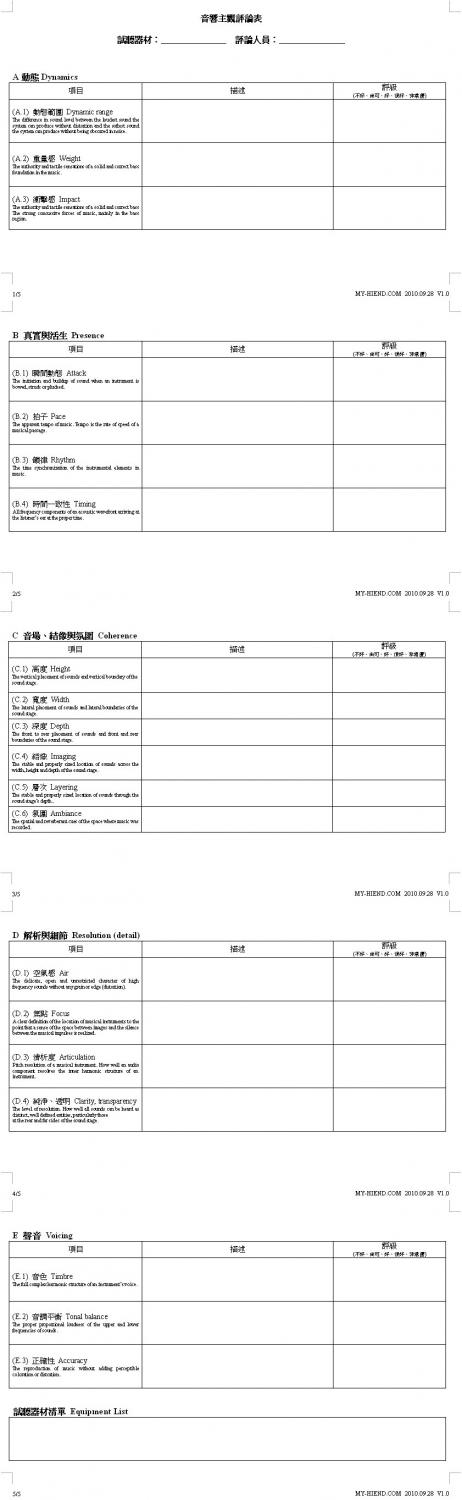 (4) proper equipment setup, speaker placement and selection of the optimum evaluator listening location (stereo sweet spot);適的系統建置、喇叭的擺位與皇帝位