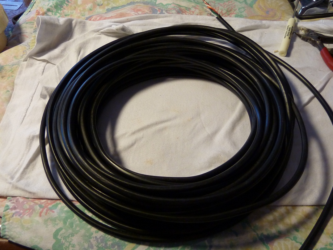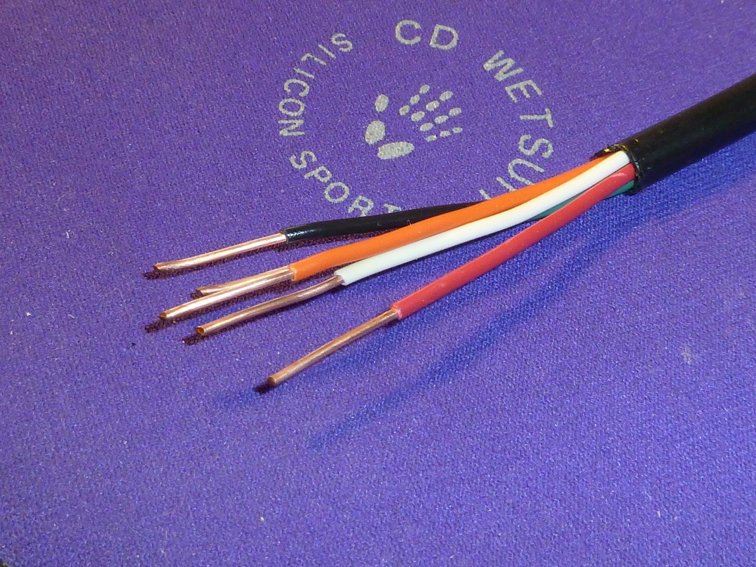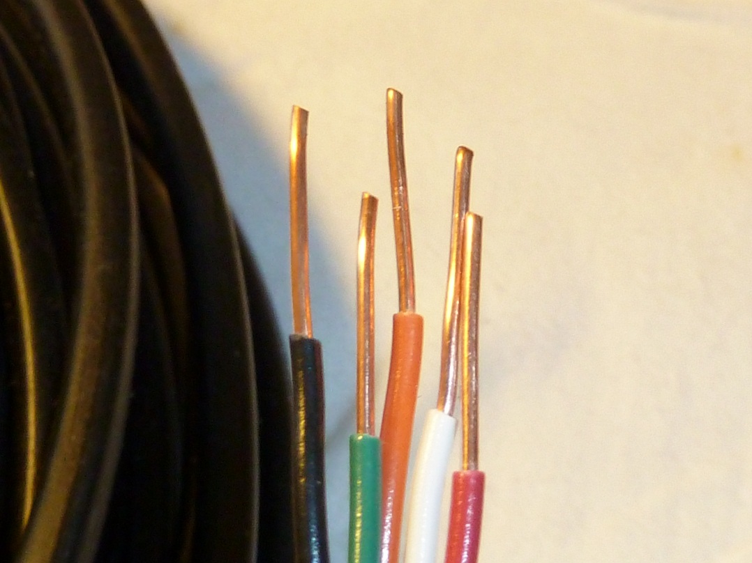 老電線:看到這線看材質不錯5蕊,舊貨店的很便宜,該是古早電話用線要不就是控制器用延長線[冷暖氣],但看色碼該是雙對電話線加單一地線 銅質看看還不錯