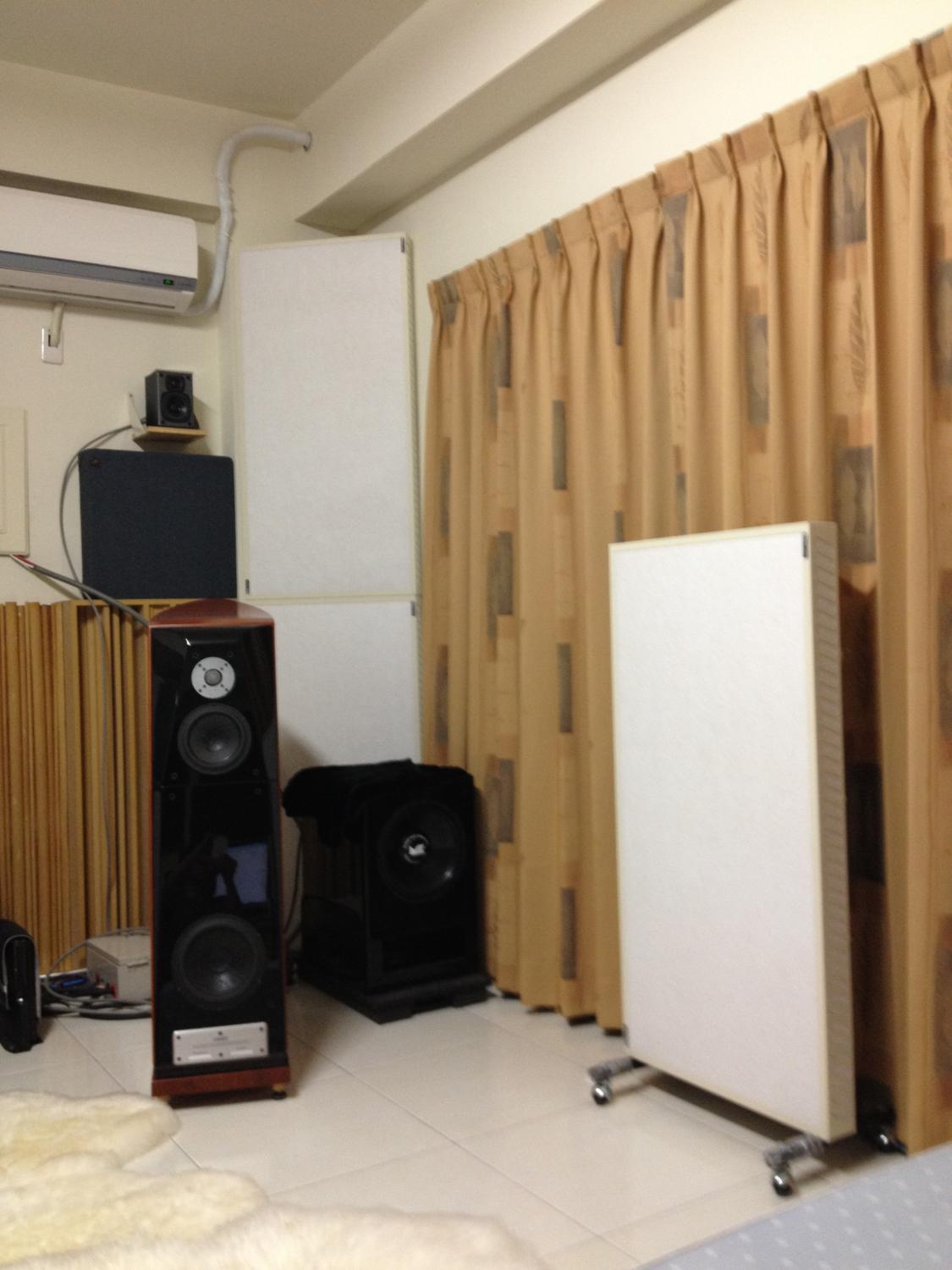 爬文版主的調音記錄.考慮好久要不要買Realtraps MiniTrap.怕效果達不到要求.購物慾望戰勝理性買了六片.四片放在喇叭後面牆腳.第一反射點各放一片..