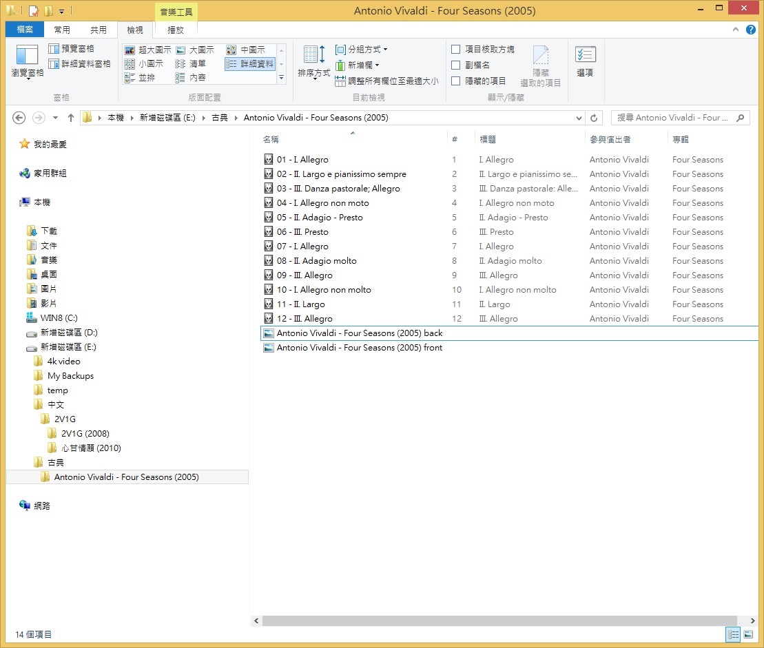 E: -> 古典 -> Antonio Vivaldi -> Four Seasons (2005) -> Four Seasons (2005) back.jpg 以及Four Seasons (2005) front.jpg