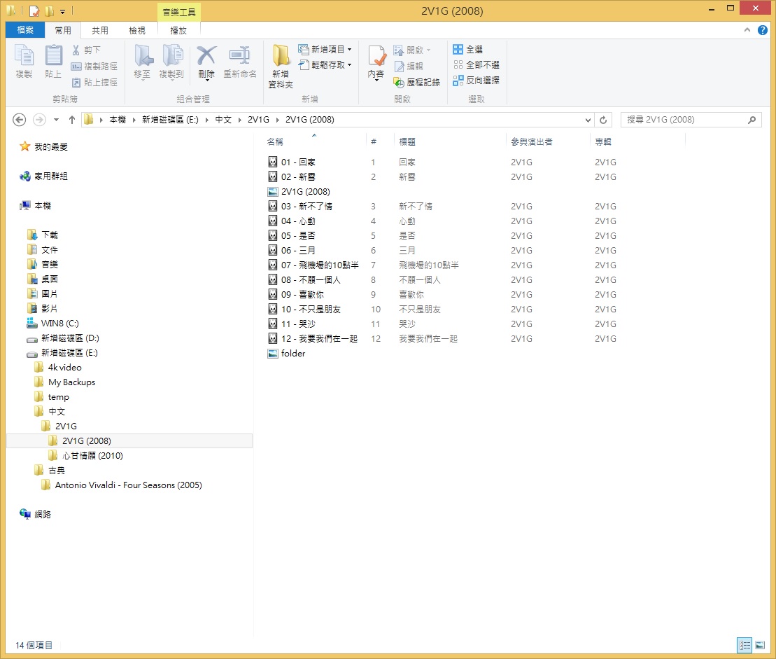 可以看到2V1G (2008)專輯裡多了個folder.jpg