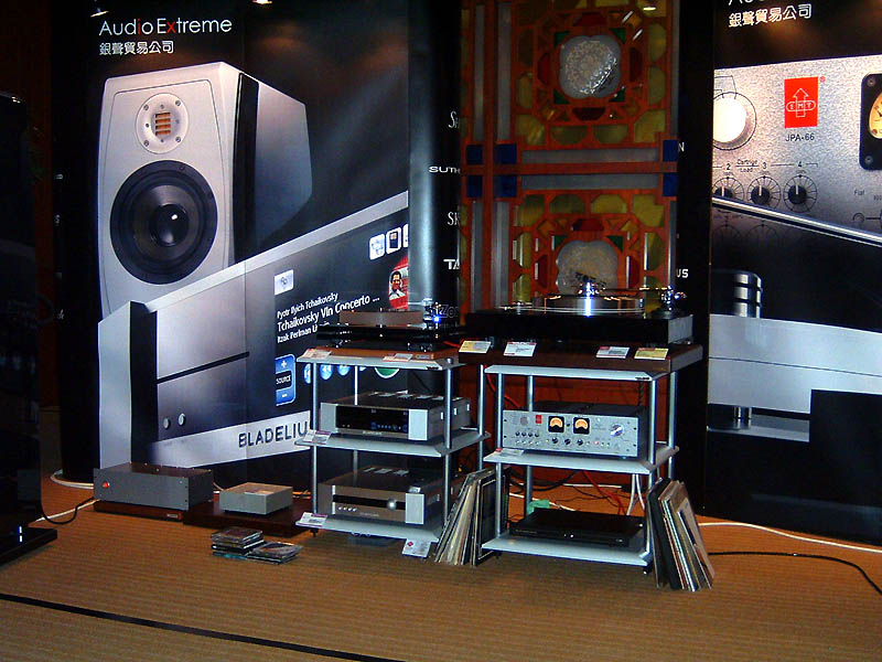 次世代的訊源中Bladelius Embla是比較有代表性的產品之一,Bladelius Embla配合EMT前級搭配ADAM Tensor,從現場演示感覺音場寬闊、動態淩厲是Bladelius Embla的特點。也體會到直接播放CD不如rip後的檔案播放好。這個系統給我比較深的印象是它的分析力、速度、瞬態爆發力,重播一些爆棚的大動態的音樂十分到位,沒有多少可哥挑剔的地方。但快速乾淨夠力的同時,感覺缺少一些甜美。如果能把火氣降一下,更柔美一點,會讓人更能享受音樂之美,陶醉其中。不管是類比還是數位,其實都應保持迷人的音樂性及感染力。另外ADAM Tensor給我的感受它像照妖鏡一樣,不良的錄音原形畢露,有時聲音太過HD也是蠻恐怖的。