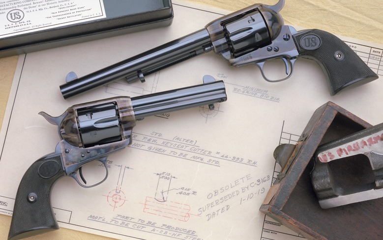 http://us-guntech.com/im/0.gifThe US Pre-War® offers an Old Armory Bone Case™ and Armory Blue™ finish, re creating the classic gun made at the Colt Armory during 1st Generation production. The US Pre War® features the correct use of assembly number in hidden places and an original serial number from 1st Generation production. You can choose to replicate an original SA in your collection! Original Colt SA caliber offerings and unique polish techniques re-created by USFA to build these fine heirlooms showcase the work of our Armory Workmen.