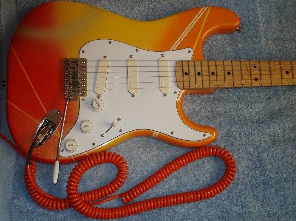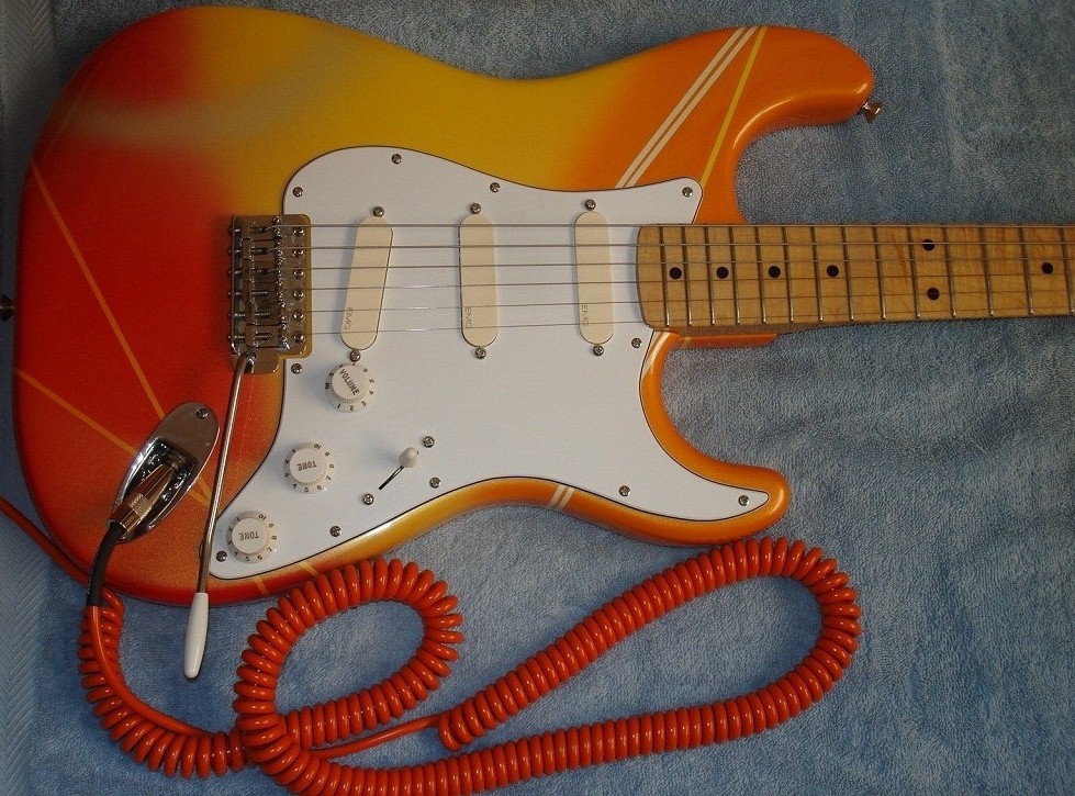 這個D兄就有 興趣看了:D又是一把Fender 這是特製店的琴 拾音器也升級了 虎紋加厚木頸 特別不同的色彩琴身 音質當然是非常的好