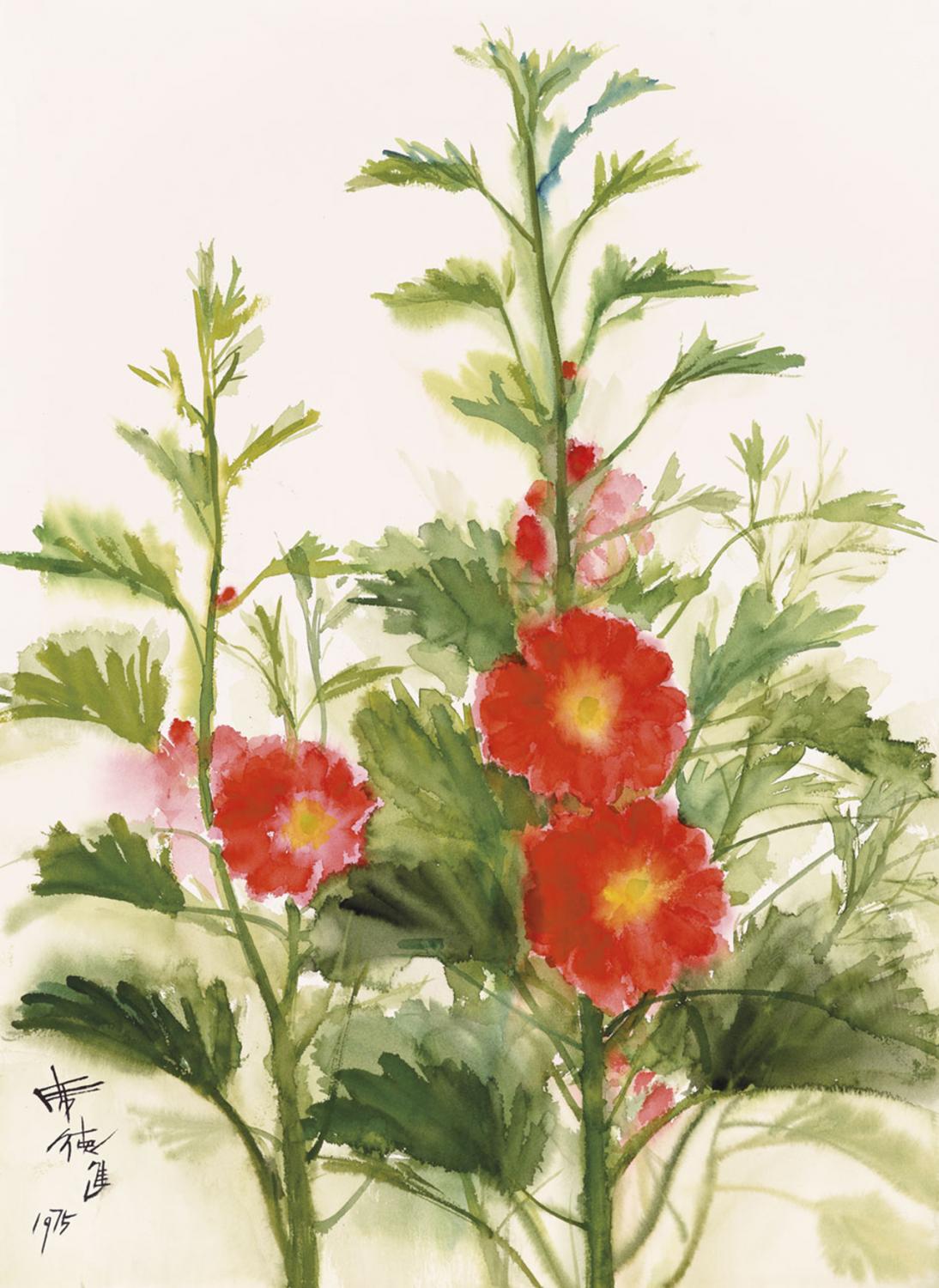 芙蓉,中國獨有的花卉,因其諧音,素有「富貴榮華」的象徵。芙蓉亦有文人潔身自好的寓意,因此自古以來嬌美的芙蓉花常常成為書畫中的主角,借其吉祥之意。由於日常生活中少見芙蓉花,席德進也極少描繪芙