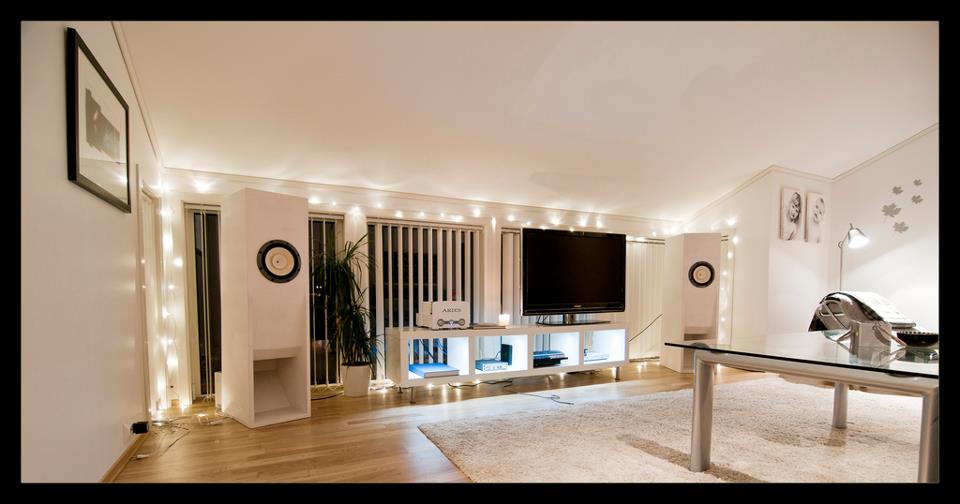 這是我自己的音響空間. 我自己是覺得蠻漂亮的啦 (哈哈). 當時規劃這間房子時為了要不要有單獨的音響室著實考慮了很久. 在寸土寸金的台北要規劃一間能夠讓一對大喇叭有足夠呼吸空間的音響室很不容易所以毅然決定與其他居家空間一起規劃.