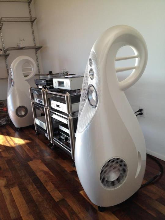 And from Dubai: GIYA G3 in Pearl flanked by the Stereophile Speaker of the year, K1, finished in Arctic.
