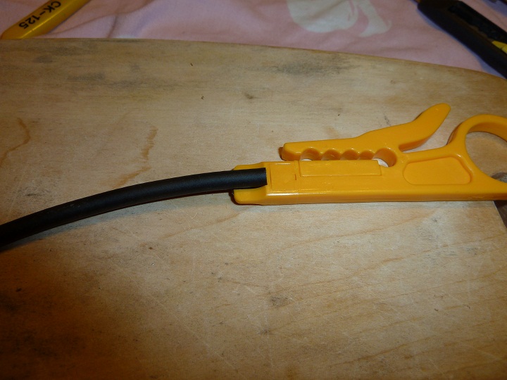 我用工作刀切割線所以線切割面 直角平面非常好 播線[外層黑膠]半寸正好不需在修剪掉