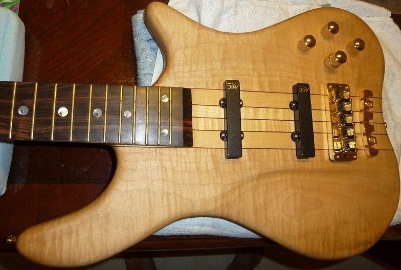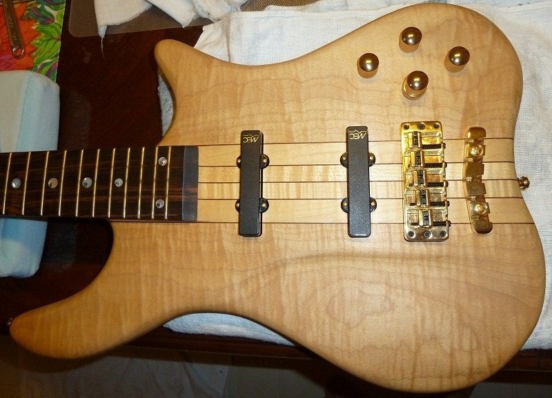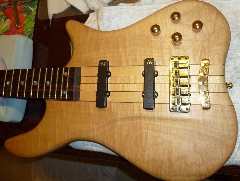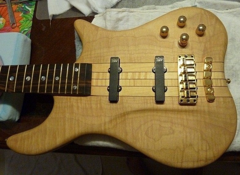 Natural Swamp Ash Body w/Flame Maple Top, Ovangkol Neck w/Ebony Fingerboard, MEC JJ Pickups & 2-Band EQ, Gold Hardware, Case, Gigbag. Retail $6281