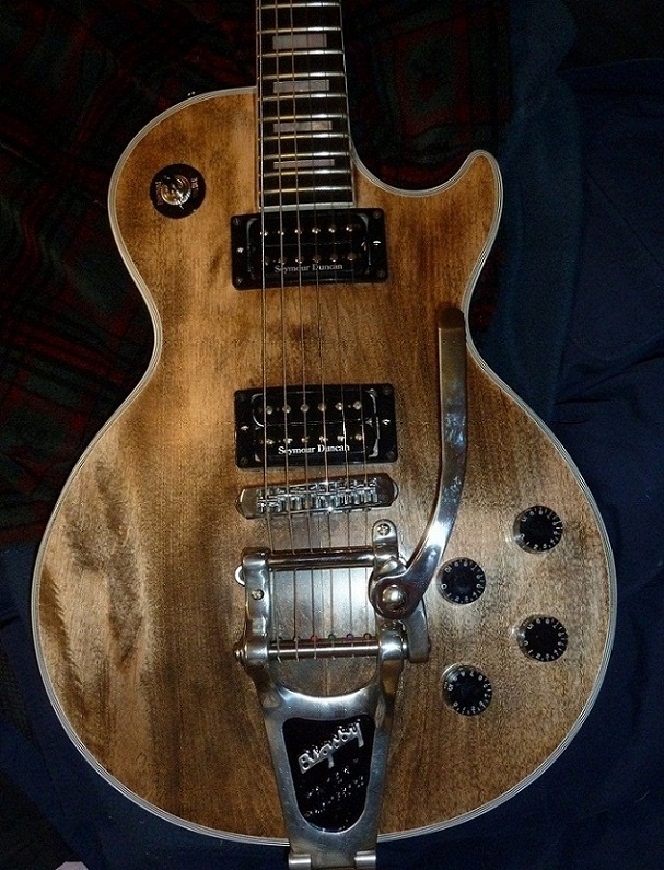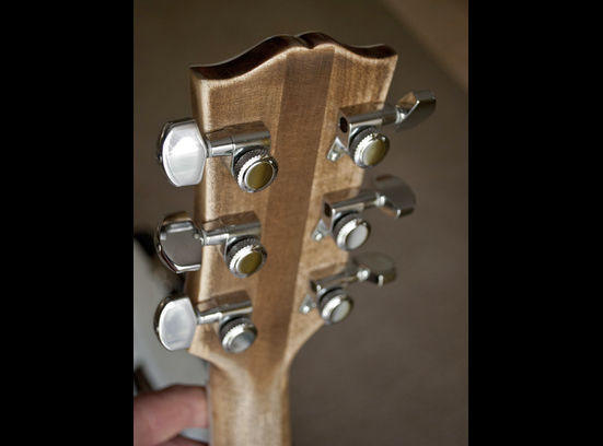 現在才注意到這把琴的琴頭木頭跟常見的Les Paul 不太一樣