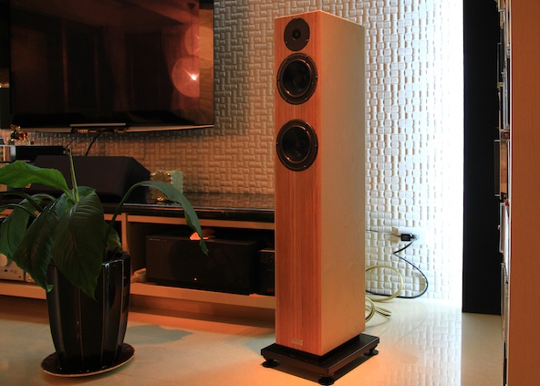 今晚到音逸串門子,順到聽了Penaudio SARA,第一眼這對喇叭就讓人在視覺上非常享受,比例很美,整體看起來優雅高級,漂亮極了。