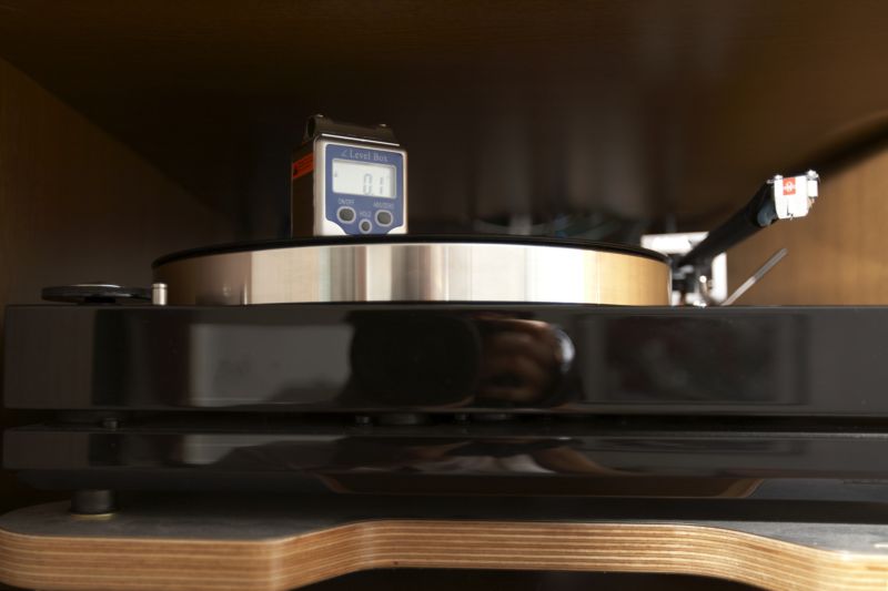 因為我的LP盤是放在音響櫃裡, 普通的水平儀都是從上往下看, 但在格子裡啊, 怎麼辦? 斜著看可是會有誤差的喔!!!