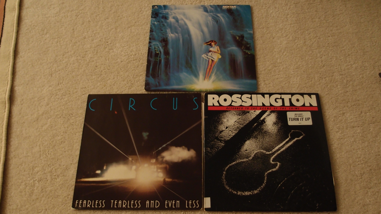 另外這三張除了Rossinton(應該是Rossington Collins Band的Rossington),另外兩張我都不熟(這就是買二手唱片的好處,可以很輕鬆的試試沒聽過的樂團)。Nektar的CD都很貴,唱片也不便宜。還好這張只要5塊美元:)