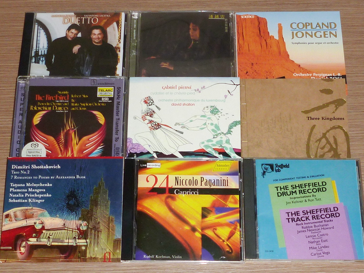 Pain of Salvation(POA-insideout)..Before the Light(台灣錄音哦)..Savatage(Gutter Ballet/Street)..綾戶智繪(Live the Best)..悄悄告訴他原聲帶..菊花夜行軍..Infrasound(?原住民歌唱)..紅色警戒原聲帶..Genesis-the Lamblies Down on Broadway..最後又加入古典: 瓦歷斯-電離..Lyrita 馬友友 1977'(clap) 大提琴協奏曲..