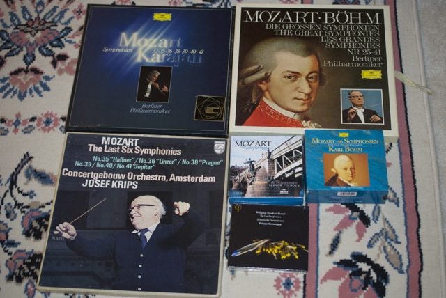 不知不覺,我竟然收了這些套莫扎特的交響曲集(應該還有Karl Bohm,Claudio Abbado的,懶的找出來照了)。昨晚聽的是左下的Krips