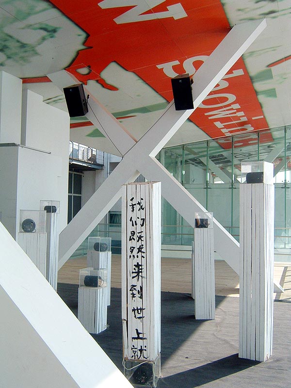 聲音裝置UNIT由一些懸掛下來的揚聲器組成。揚聲器中下落石頭的聲音和鼓聲共鳴。突然發生的落石聲音與和諧的視覺形成對比。這是德國藝術家在青海旅行中錄製的佛教寺廟的鼓聲、打擊樂器和石頭滾落的聲音。