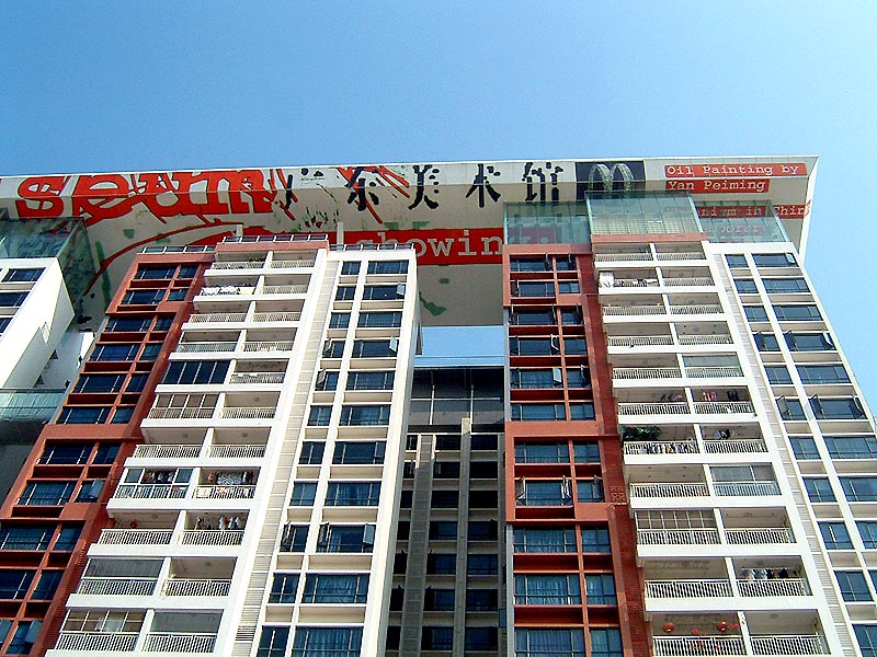 從廣東美術館開車30分鐘,從白雲國際會議中心約15分鐘就可以到達廣東美術館時代美術館,這是廣州首個社區美術館,新館舍邀請荷蘭著名建築設計師Rem Koolhaas & Alain Fouraux設計,其設計理念獨特之處,在於把美術館多樣的功能空間化整為零,分散到一棟高層居住建築的數個不同樓層中,並在樓頂挑高搭建了充滿視覺衝擊力的展示空間,融現代與時尚為一體。這種把美術館分割成幾個部分嵌入到居民住宅建築中的創意,有別於其他同類的美術館,以全新的理念詮釋公共空間與日常空間的組合運用。
