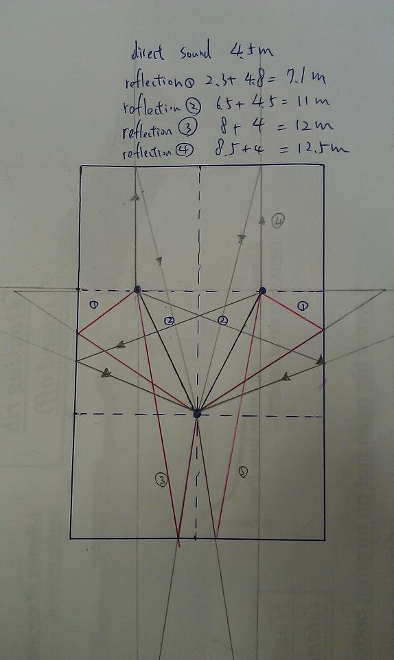 上圖示我畫的第一反射音的位置: