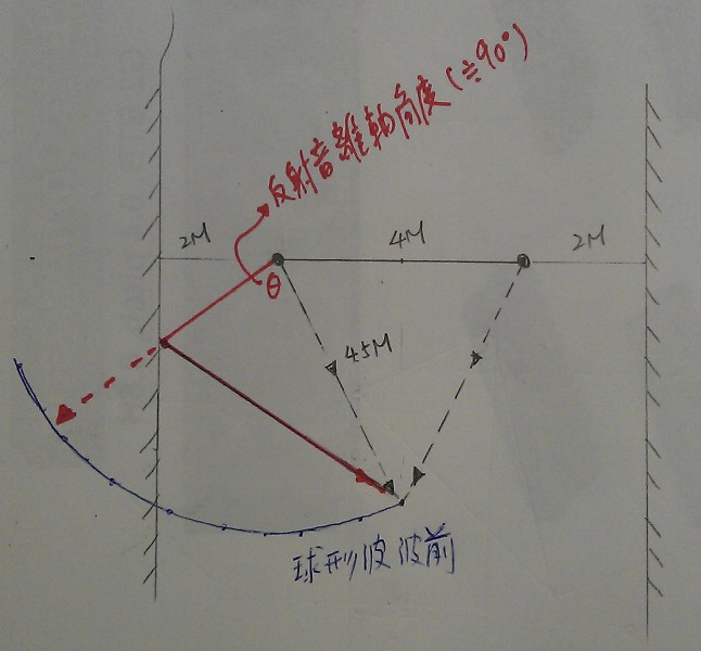 我發現自從放下課本後, 我的數學能力大幅下降, 因此只能使用圖解法來找反射音, 畫出來就容易了解多了!