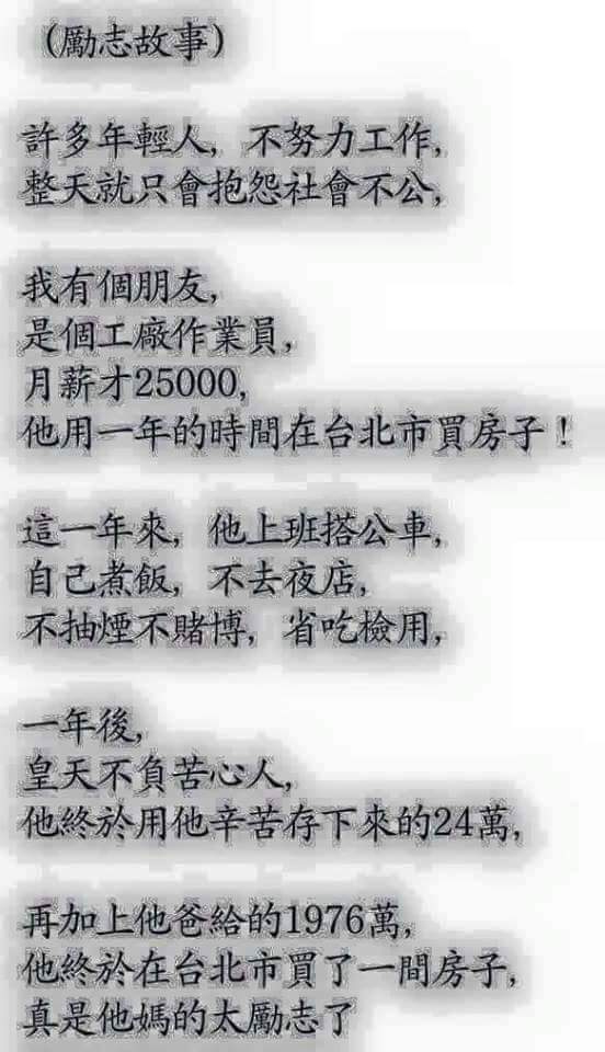 公司發放年終獎金那天,妻子Line了二句英文給我,寫到: