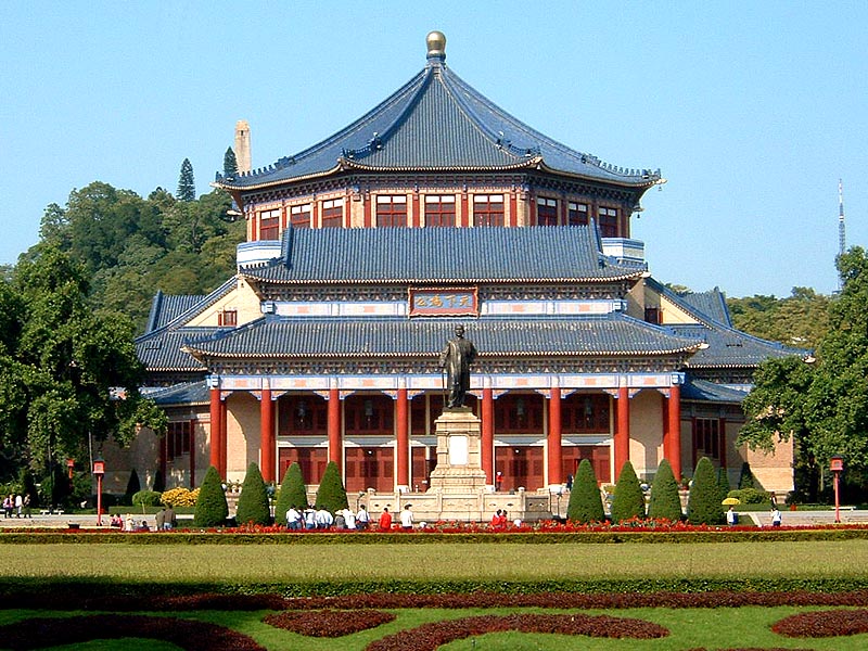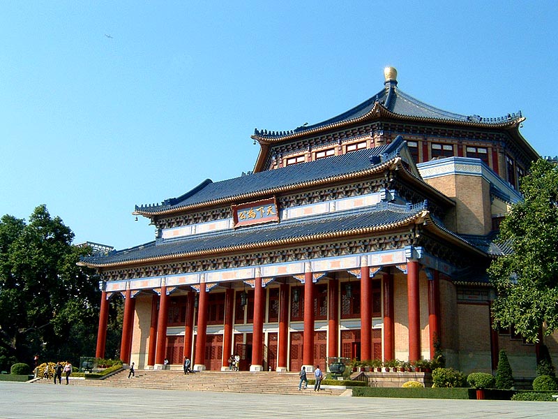 中山紀念堂位於廣州市東風中路北側。原是清代督練公所、辛亥革命後督軍署、1921年非常大總統府所在地。後被陳炯明用炮火擊毀。1925年孫中山先生逝世後,為紀念這位革命先行者而設計建造的。堂後的越秀山上有與紀念堂同時興建的中山紀念碑,高37米,外呈方形,用花崗石砌成,正面刻有《總理遺囑》,堂、碑在同一中軸線上,上下輝映。
